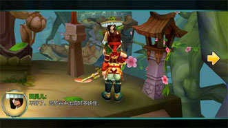 接下来就跟小编一起来玩下第一个任务吧。先打开任务引导环,便会自行搜寻至任务NPC,之后便会出现情景对话,然后点击右侧的黄箭头一直继续到对话完成,这样就可以顺利地领取到任务了。